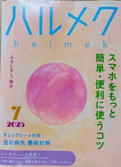 ハルメク7月号届きました。おいしそうな桃!!今月の特集は「スマホをもっと簡単・便利に使うコツ」いろんな機能がありそうだけど、わからなくて、私が便利だな~~~っと思って使ってるのはメモ機能だけ!最近は音声で入れることもあり、ますます字を忘れそうです。コツを覗いてみます!!にほんブログ村