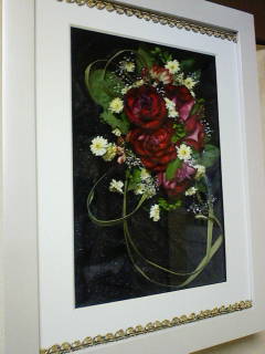 以前、このブログに載せた大好きなマトリカリアとバラとアレンジして制作しました。