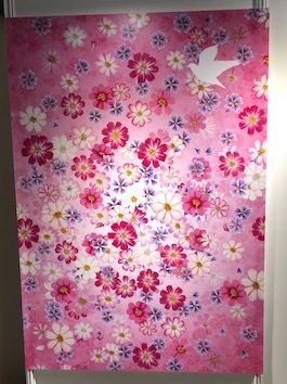 「2020年宝塚カレンダー」のデザイン、杉野先生の押し花アート作品を大判にして展示されていました。