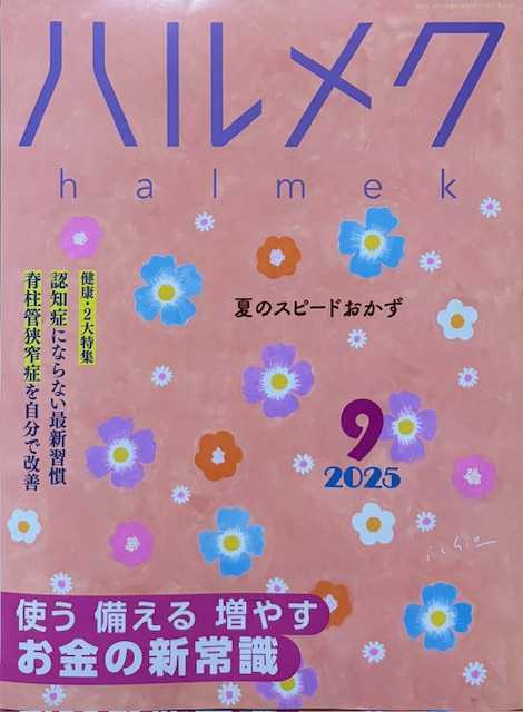 ハルメク9月号が届きました。特集は、「お金の新常識」「認知症にならない最新習慣」「脊柱管狭窄症を自分で改善」昨日、股関節を治療中の友人が、その診断も受けたばかりと聞きました。「痛みの原因がわかって良かった。まずは、脊柱管狭窄症の治療から始める」とのことでした。巻頭インタビューは、心療内科医 海原純子さんとても興味深いお話でした。にほんブログ村