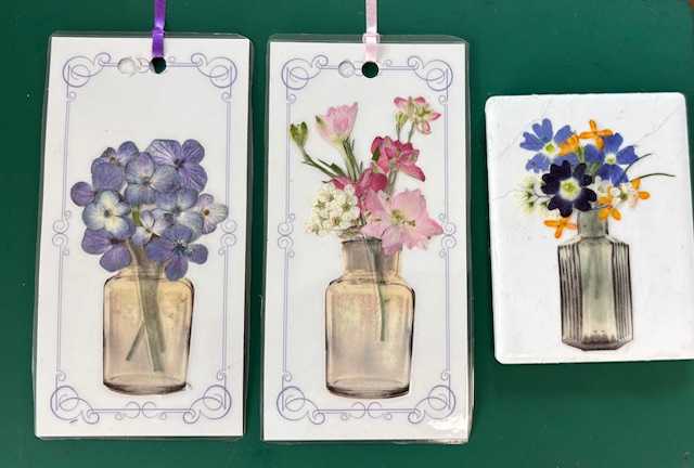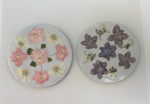可愛い押し花コースターハルメク花アート カジュアルレッスン4Mさん作Uさん作お花いっぱいの素敵なコースターが出来上がりました。にほんブログ村