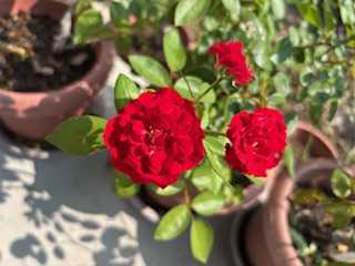 赤い薔薇 朝、ひとつ、ふたつ、可愛いバラが咲いています。にほんブログ村