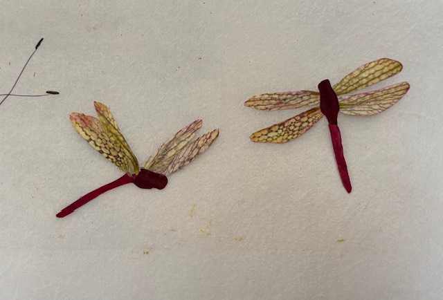 押し花の赤とんぼSさん作可愛い赤とんぼ!!彼岸花の上を悠々と飛ぶ赤とんぼの押し花作品を制作されました。にほんブログ村