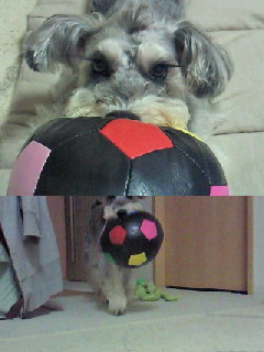 ビッテが扱いやすい小さめのサッカーボール!しかもやわらかいので持ち逃げ可能!うれしぃ~(≧▼≦) (KEYママありがとうございましたm(__)m興奮のあまり、ちょっと破けちゃったけど大切にします。)