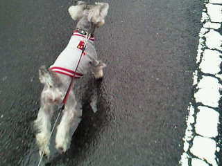 んんっ?もう朝?暗いなぁ~と思ったら雨がシトシト。ありゃりゃ、今日は朝散歩なしかぁ~(`へ´)と諦めていたら、天気予報だと晴れらしい。気が付けば雨も止んで少し明るくなってきたので、短いけどビッテ・ゴー♪路面が濡れてたけど、ついつい長くなってしまいました。(会社はギリギリセーフ!)