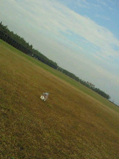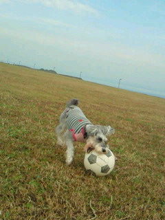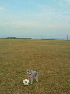 朝、散歩に行くぞと思ったら雨がぽっぽっ。退屈な朝になりました。昼過ぎにママの実家に寄った後で久しぶりの海が見える広場へ。気持ちいい~(^O^)