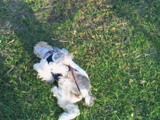昨日、会社帰りにOZ TRABEL“秋の旅へ”を購入。見ているだけで早くお出掛けしたくなってきたよ。涼しくなったと思ったらもう11月か。紅葉もあっという間に終わってしまうんだろうねぇ。あさんぽは、久々に豪華?親水公園&レモンちゃん広場の2本立てコース。飛び石をちょちょいと越えて、河川敷を目指して快調に歩いていったら、さわやかな秋晴れの空が見えてレモンちゃん広場に到着~!走って、スリスリして、涼しくて気持ちいい朝を満喫。朝日がまぶしくて気持ちいい~。