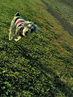 昨夜は急なパパの思いつきでHalloween衣装を着せられて不機嫌だったビッテさん。一夜明けて脇目も振らず、大好きなムックの土手に直行して、憂さを晴らしましたとさ。今日は11月1日でワンワンワンの犬の日U^ェ^Uなんだって。じゃぁ11月11日とか1月11日は違うんかいなぁ~