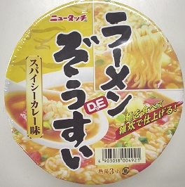 アクセス数が無事888を迎えた誰がゲットしたか気になって、見に行ったら自分で押えてしまった。ブログを始めた時からこの数字は、特に気になっていた、どちらかと言うと昔人間に属する自分には、八八八の末広がりは、たいへんおめでたい数字で、お祝いするのに十分な条件なのです。この日の為に準備していた記念品を食べることに(夜食ですな)、前々から食べたいような、食べたくないような不思議なカップめんです。「ラーメン」で「ぞうすい」で「カレー」な食べ物です。では、いただきます・・・。うーん、どうなんでしょうかカレー味のぞうすいは・・・。ごちそう様でした。