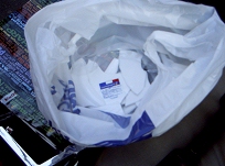 上新電機から「土産をやるから店に来い」と珍しく宅配メール便で大きな封筒タイプのダイレクトメールが届いた。近畿圏に住んでる人で上新の会員になっていれば、ほとんどの家庭に届いている物だが、ちょうど電子レンジ用の平皿がほしかったので有り難くいただきに出かけた。途中の国道で、大阪国際女子マラソンに捕まった、交通整理のポリさんに聞いたら、30分ほど待てとの事、迂回するには、大阪城か長居競技場を回り込まなければならないので、このまま行ける所まで進んで待つことに。ここからは、選手の走る道路に面して停まっていないので何も見えない、Uターンも出来ない、何もすることの無い30分の長いこと・・・ようやく動き出して日本橋へ、待ち合わせしていた連れに、遅くなったことを謝りながら昼飯を食べに餃子の王将へ自分のおごりでホリデイランチを食べてから、日本橋をうろうろ、来月閉店するソフマップを見に行ったが普段と変わらず、他に行くところも、見るものもなくなったので、土産をもらいに上新一番館へ、引換券を渡してお皿を二枚、受け取った「割れ物ですから、気お付けて下さい」「はいはい」 落として割れました単車に積み込むときに、滑って落ちていきました。下に下に、硬い硬いアスファルトに向かって、「ガシャ」 鈍い音と共に今日一日が無駄になった瞬間でした。大バカ野郎です。連れは、大笑いしてました。