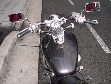 やたらと暖かいので、雨の合間を見て単車で出かけました。コーナーを曲がる度に、濡れた路面でリアタイヤが微妙に滑る。2時間ほど走り回って、ガスを補給、距離メーターを戻す時に、もうすぐ走行距離メーターが大台に乗ることに気が付いた。残り17キロほどだが、どのあたりまで走れば17キロになるのか分からない。走っていてもメーターが気になって、残り5キロを切った頃には、ほとんどメーターを見ながら走っている、ラスト500mは、故障車のごとく側道をノロノロ、スピードを落とすとなかなかメーターは上がらない、大きな交差点で信号につかまり、その時点で残り100m弱ほとんど次の0が見えているが表示は9999.9「この交差点を超えたぐらいで丁度だな」青信号で走り出しメーターを見たらピッタシ10000.0まだ交差点の中なので止めれず、仕方が無いのでスルスルと歩道を越えた所で単車を止めて記念撮影。 ちょっとオーバーしたが、まだ0も見えてるし記念にパチリ。