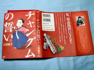 講談社コミックスDX宮廷女官チャングムの誓い1作画 三原陽子 原作が韓国ドラマのコミックスです、ストーリーは原作に沿った物で細かいエピソードを除いた簡略版ですね。作者が「カーテン・コール」の三原陽子だったのでオリジナルエピソードでも入っているかと思っていたのですが・・・。ドラマを観直す時間も無いので、コミックでも読んで楽しんでいますがこの作品はなかなか古本屋に回ってこないので続きが読めません・・・最近はコミックを買いすぎてるし少しセーブしないとまた、本に埋もれてしまいます注意せねば。物はこれです