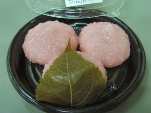 桜もちです、以前地方の友人に出した時に「珍しい桜餅だね」と言われ不思議に思ったことがありました。私は子供の頃からこの「桜もち」しか知らなかったので珍しいと言われても・・・当時出したのは写真の物じゃ有りません、これは塩漬けの葉っぱをケチった安物ですから。そう言えば最近この桜の葉を食べない人を良く見かけるようになりました「柏もち」じゃないんだからそのまま食べればいい物を何食べてんだか・・・。さて、「桜もち」ですが関東と関西で物が違います発祥が違うのでまったくの別物ですね、関東風の「桜もち」は見かけてもピンときませんがね。写真の「桜もち」を実家の両親に持っていったら「葉っぱ付いてない、返して来い」・・・父上、母上、昨今の安物とはこう言った物なのですよ「ご笑納」下さい。やはり桜の葉っぱが付いてないとなー「ピンクのおはぎ?」・・・。今度は奮発して高いの買って見ますかねー。