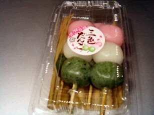 昔からある「三色だんご」です。別名「お花見団子」よく花見場所で売られていましたが最近は見かけなくなりました、今日スーパーのレジ横に積んであったので買ってみました。子供の頃、母親に連れられて商店街に来た時などに、顔見知りの和菓子屋で1本だけよく食べさせてもらったのを思い出します。米粉(上新粉)を丸めただけの簡単な物ですが、見かけたら食べたくなります4本で100円でした、味は同じですが変にやわらかい食感ですね、ビックリするほど美味しい物ではありませんが、頬張ると「あーっ、団子だなー」と変な安心感がありました。安物団子にノスタルジーを感じる今日この頃です。