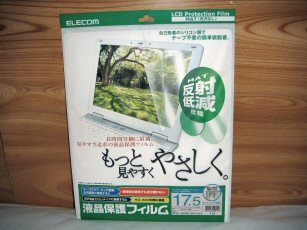 ELECOM OAフィルター17.5インチワイドまで用 液晶保護フィルム EF-FL17WFJ&Pマルチメディア館貯まったポイントで購入。前に買ったDELLノート inspiron1720の17インチワイド液晶に貼り付けます、光沢液晶でクリアに出力される綺麗な画面なのですが、映り込みが激しくどうにも我慢できずに反射低減(光沢なし)フィルムを貼ることにしました。DVDやネット画像を見るのに光沢ありにしたのに・・・もったいない話ですね。フイルムの感想は確かに映り込みは気にならなくなりますが全体的に白っぽくなり透明感が出なくなります、しかし文字は見やすくなるのでほぼOKです。貼り付ける時にほこりが入らないように貼るのが難しく、空気中にほこりが飛んでいない場所で貼るにはバスルームしかなく暖房の入っていない風呂場の寒さを痛感しました。【◎メ在庫30台以上 】17.5インチワイドまで用 液晶保護フィルム【OAフィルター★】 ELECOM EF-FL17WF