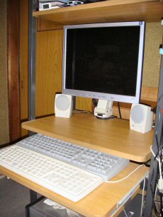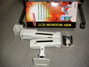 液晶モニターを机に固定するアーム(金具)です。LCD MONITOR ARMLONG MAXLMA-02日本橋ドスパラ\3,800-前まで使っていた状態ですこのモニターアームが壊れたのでLMA-02を買ってみました。安物に無理をさせたのか、使い方が悪かったのか・・・急にスプリングが折れてしまいました。さて、買ってきた物を調べたらモニターアームを左右に回転する部分が硬くて回りません・・・早速ばらして調べてみました。写真中央に軟性のプラを挟んで滑らせて回転する構造になっているのですが引っかかってスムーズに動きません。円形部と可動部を溶接しているのですが、溶接面がギザギザに荒れておりそれが引っかかっていたのが原因でした。金ヤスリとサンドペーパーで平らに削って少しだけ錆止めにテフロン白グリスを吹き付けて完了です。パソコンラックに普通に取り付けたら19インチモニターだとモニター下に隙間が無くなり、何も置けなくなってしまいました、せめて5センチほどは余裕がほしいので上から吊るして取り付けてみました。これが思いのほか具合が良くて思わず連続写真でアップするほどです・・・。驚くほど自在に動かせますが接続コード(電源線とか)の長い物が必要です、後は取り付ける場所ですね十分に強度がある場所で無いと重い本体とモニターは支えきれませんので注意が必要です。可動部のカバーとアーム内に異物が入らないように入れられている保護パーツです。逆さに取り付けたらカバーが外れて落ちてきました、別にいらないのではずして起きます、保護パーツは動かすたびにペキペキ音が鳴るので抜いてしまいました。共に自己責任で取り扱う物ですから私はいりませんね。今回、特価品を購入したので動きが悪くても返品、交換しませんでした。重たい思いをしてやっと持って帰ってきたのにまた持って行くのは面倒ですから・・・この製品は自分でメンテできる方以外はお勧めしません、スムーズに動かして使うには各部の調節が必要ですが一切の説明書は着いておらず専用工具もありませんからご注意を・・・。安くて便利な物ですが作りが荒いのや、溶接部の強度も気になります。保証書も何も付いていないので分かりませんが、吊り下げで逆さまに使うのは仕様に無いかもしれません、故障や落下事故が起こっても逆取り付けは自己責任でお願いします。LMA-02(デスクサイド固定型液晶モニター用アーム)