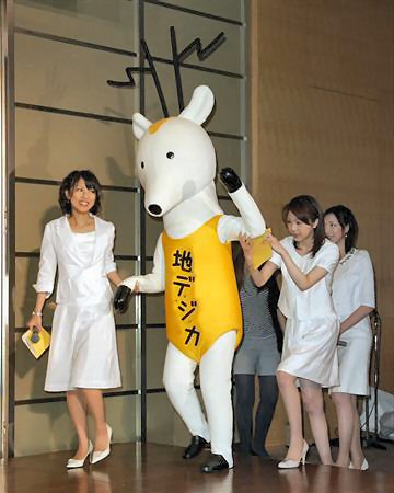 服を着た白鹿民放連は27日、2011年7月の地上デジタル放送完全移行をPRするため、新しいキャラクター「地デジカ」を発表した。「地デジ化」にかけて名付けられた地デジカは、2本足で立ちアンテナの角を持つ。・・・何でしょうかねーアニメのムーミンに出てくる間抜けのスニフに似ていますがやはりこちらも間抜けなんでしょうね。身長が高すぎて角のアンテナが邪魔だし、のぞき穴が小さいから足元も見えない・・・各地のイベントに出掛けたら転ぶわ引っ掛かるわぶつかるわで大騒ぎでしょう、急ごしらえでは碌な事がありません。白鹿 上撰 1.8L