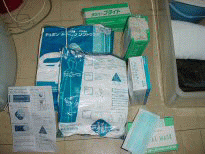 今回の豚インフルエンザに対する会社の対応に散々文句を言ったら色々と送られて来ました。・サージカルマスク300枚・化学防護服10セット・検査用ビニル手袋300枚・ペーパータオル1000枚その他消毒用のスプレーや石鹸、ビニール袋、ポリバケツなど使い方の判らない物まで入っていました。珍しいので広げて調べてみましたがどうも少し古い物らしく鳥インフルかサーズ用に用意していた物を送ってきたみたいですねしかしこれをどうやって効率的に使うのか良くわかりません会社としては「人の応援は出せないので自衛しろ」と暗に言っている訳でしょうから・・・今度完全防備して現場を回ってみますかね、さいならー。