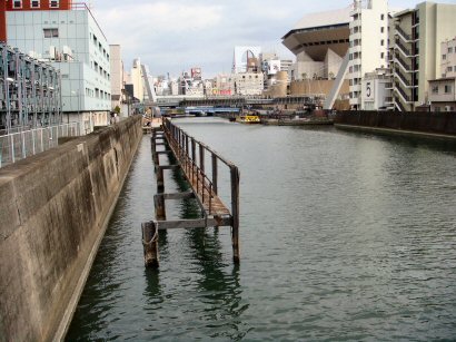 ここは大阪南「湊町リバープレイス」の西にある住吉橋。カモメを見に来たのですが不思議と1羽もいませんでした、この時期には毎年沢山のカモメが集まっている場所なんですが河川整備工事の為ですかね。先週通った時には確かにいたのですが・・・鴨が2羽だけ川面に浮かんでいました、誰かが餌付けしているのか欄干からデジカメを出して待っていると寄って来てしばらく下で待っている様です、何か餌をあげたいところですが野鳥の餌やりは近隣住人や関係団体に怒られる可能性か高いのでくれぐれも注意してください。