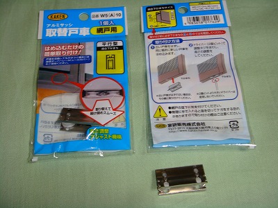アルミサッシ取替戸車網戸の動きが悪くなり開かなくなった外して調べたら戸車が割れてレールに食い込んでいました家研販売株式会社取替戸車平行型アルミサッシ網戸用W5(A)10ホームセンターダイキ¥280-網戸を買い替えるのも高いので簡単に修理出来るはめ込むだけの戸車を2個購入。中央のビスは高さ調節用でレールの深さに合わせて調節します。袋から出して隙間にはめるだけです、簡単な爪が付いているだけで頼りない感じでしたが網戸の自重で上から絶えず押し付けているので大丈夫でした。古い戸車は外せれば外す、外れなくても元の戸車より少しだけ高く調節するだけで問題なしでした。レールと網戸の戸車部分をデジカメで写して隙間のサイズを測ってホームセンターで店員に見てもらったら直ぐに何を買えばいいのか簡単に分かります、事前準備が何事も大事ですね。はめ込戸車 6型 6DW丸 網戸用