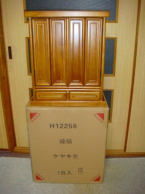 49日が済んだら遺骨は寺に納骨して家に設けた簡易祭壇(遺骨、白木位牌、蝋燭立て、線香、リンセット、遺影、花立、水入れ、ご飯入れ)等の葬儀屋から貰った簡易セットも処分して全て片付くと思っていたのに逝去を後で知った故人の知り合いが意外と多く訪ねて来て焼香して行かれます、わざわざ遠い所を来てくれたのに何も拝むものが無いのは如何なものかと親戚や家族とも話し合った結果位牌ぐらいはしばらく残して置く事になったのですが葬儀屋から貰った白木の位牌ではどうも具合が悪いらしく今回作ることにしました。何でも49日までにお寺で白木から塗りの本位牌に魂を移してもらい白木の位牌は御焚き上げしてもらうのが正式ですが面倒ですから端折りました。位牌だけでは味気ないので入れる箱も用意するかと仏壇も購入、ネットで探した仏壇の写真には仏像も飾ってあったので彩りに仏像も購入・・・知り合いの自称宗教家に聞いたら色々と宗派によって細かく様式が決まっているが最近では見た目だけ整える人も多く仏式なら49日、初盆(新盆)、1,3周忌(回忌)程度をそれなりにやっておくと世間体も保てるとの事。知り合いや姪甥っ子が故人を偲び手を合わせるだけでオールOKで親族の気が済めば何でも良いから好きな物(安い物)を買っても何の問題も無い、ただし私のような無宗派な者に限るとの事。仏壇などは江戸時代前後から普及した割と新しい風習だからダンボールでも良いのだが強度と火災の心配があるので出来るだけ燃えにくい物を選ぶ下敷き等も不燃性の耐火布で出来た物を買うこと。以上の事から次の物を揃えてみました。小型仏壇【縁福】ケヤキ色enpuku-lb桐材使用の伝統型本格仏壇価格 10,000円仏壇が1万円・・・探せばある物だと実感します。扉を開いた状態背板は豪華な金色でゴージャスに・・・本格的な三段仕様小物を入れる左右の引き出し便利な板も飛び出す。塗り位牌春日2.5寸n-kasuga25価格 4,300円流石に位牌だけは玩具にする訳にもいかないので本物です。位牌文字入れ代一霊位(楷書)彫りkaisho家紋なし価格 500円前面、後面共に彫りこんで金文字にしてもらったのですが大特価の500円でした、位牌と同時購入時だけですがね。安心のお線香 中 ゴールド ASE-42010価格 1,980円火を点けない電気線香です先っぽにLEDが組み込まれており、ぱっと見本物に見えます。仏像高級上彫り釈迦如来2寸shaka-h-maru20価格 12,000円三分割組み立て式光背少し荒削りですが見た目は良いです。御尊顔少しダイエットを・・・イヤイヤ味のある良いお顔ですね。全体像これだけの物が12000円ですから安いものです。それっぽくなりましたそれぞれの配置が良くわかりませんね、電気ロウソクは大きすぎるのかしっくり来ません、何か良いものは無いかと考え中です。小型でありながら本格三段仏壇小型仏壇【縁福】ケヤキ色 桐材使用の伝統型本格仏壇・送料無料最もシンプルな位牌、最も人気な商品塗り位牌春日2.5寸仏像なら仏縁堂へ、顔が自信あります仏像・高級上彫り釈迦如来2寸