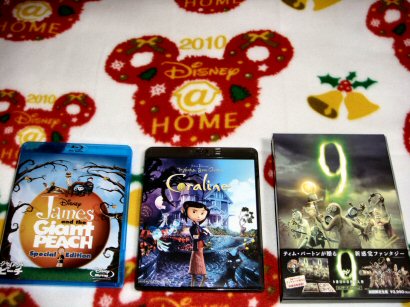 ダーク・ファンタジーの世界3本10倍ポイントに目がくらみ前々から欲しかった映画をまとめて買いしました。独特の世界観が楽しめるマニアックな作品ばかりです、この手の作るのに時間が掛る映画は製作秘話や監督のこだわり等をスペシャル・エディション版の映像特典で収録するので発売後しばらくして安くなってから買う事にしています、レンタルでは見れないから・・・・9<ナイン>~9番目の奇妙な人形~ コレクターズ・エディションDVD・コララインとボタンの魔女 スペシャル・エディション Blu-rayDisc ・ジャイアント・ピーチ スペシャル・エディション Blu-rayDisc下に敷いているのは購入特典のウォルトディズニー@ホームオリジナルブランケット2010。【送料無料】【セール特価】9<ナイン>~9番目の奇妙な人形~ コレクターズ・エディションコララインとボタンの魔女 Special Edition【Blu-rayDisc Video】【送料無料】【セール特価】ジャイアント・ピーチ スペシャル・エディション【Blu-rayDisc Video】