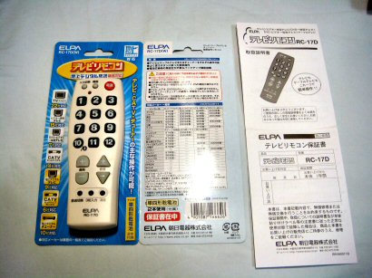 マルチテレビリモコンELPA RC-17D(W) テレビ・ケーブルテレビ用汎用リモコン シンプルな操作・機能で使いやすい 地デジ・CATV対応。PC-NETの特価品¥880-来年には買い換えるテレビのリモコンが壊れたので代替リモコンとして一番安い物を購入。メーカー番号を登録するだけで簡単に使えるリモコンで助かりました、欲を言えば学習ボタンが欲しかったですね。【新品】【激安】ELPA マルチテレビリモコン RC-17D(W) テレビ・ケーブルテレビ用汎用リモコン シンプルな操作・機能で使いやすい 地デジ・CATV対応