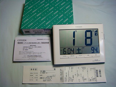 CITIZEN 電波時計パルデジットフレーム8RZ115-003なんばビックカメラ1,980円実家で日めくりカレンダーの代わりに温度のと日付けが大きく出る時計が欲しいと頼まれて買ってきました。時刻合わせがいらない電波式で毎日正確な時刻が表示される、液晶表示は出来るだけ大きな文字で曜日も出る物、壁に掛けれる、棒温度計は見えにくくなったのでデジタルで室温が分り易いもので選びました。壁に掛けるからライトは必要ありませんが少し見えにくいですね、それと安物なので表示部に蛍光灯等の映り込みが入ります普段見る場所と照明器具の位置関係を考えて壁に掛けないと光って表示が見えませんからご注意を。掛・置兼用、温度表示、カレンダー付リズム時計工業 CITIZEN【シチズン】 掛置兼用タイプ 電波時計 パルデジットフレーム 8RZ115-003