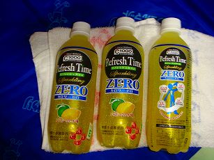 C1000リフレッシュタイムスパークリング ゼロ炭酸入りでビタミン飲料でカロリーゼロで100円。近所の自動販売機で2本買ったらドラムルーレットで7777が出て1本無料サービスとの事で同じ物を買いました、当たれば何でもうれしいものですね。