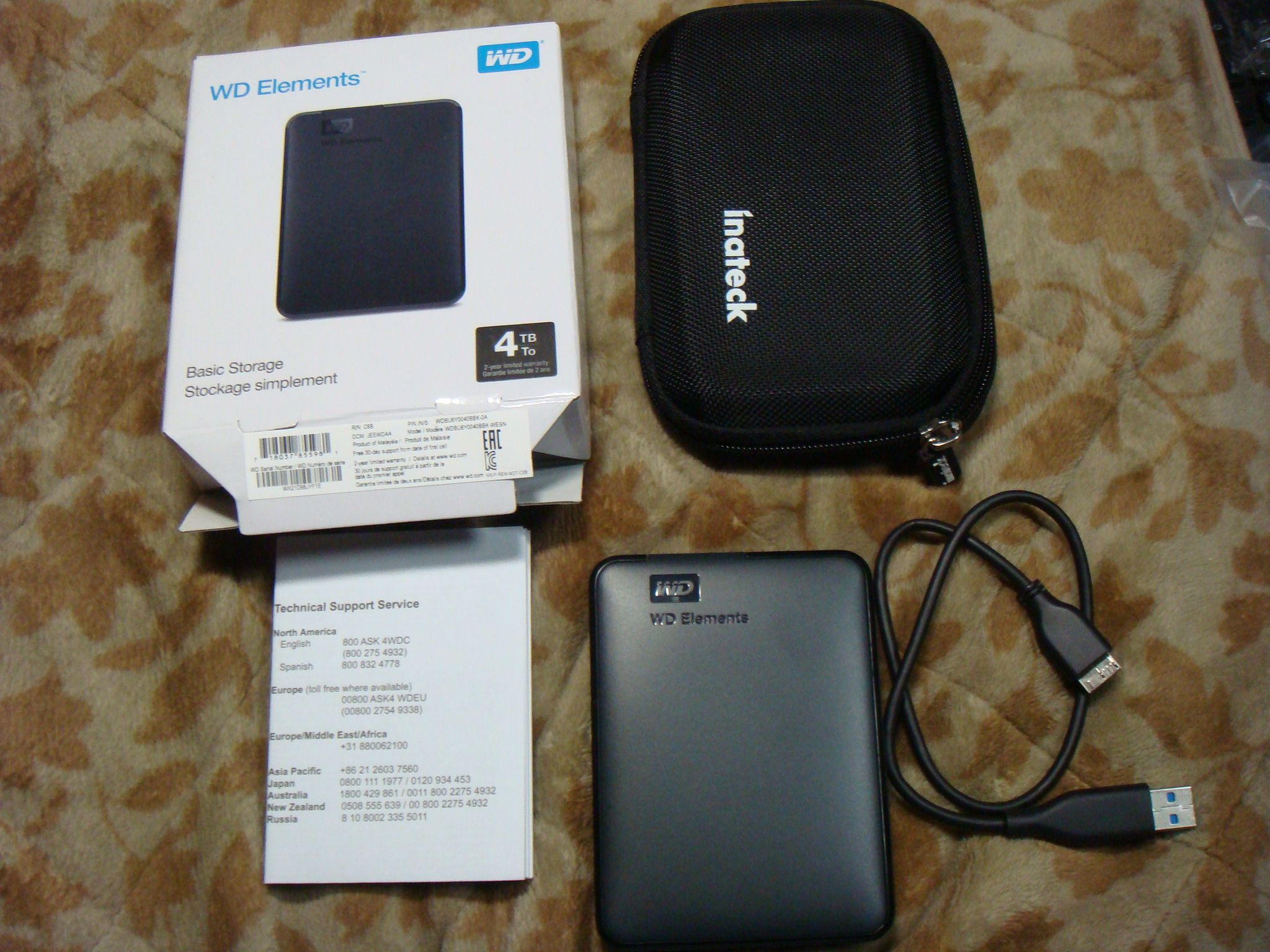 WD HDD ポータブルハードディスク 4TB WD Elements Portable WDBU6Y0040BBK-WESN USB3.0/2年保証Amazon価格: ¥ 13,980 通常配送無料Inateck 2.5インチ ポータブルハードディスクケース 2.5型HDD保護収納ケース 本体/ケーブル用別収納タイプ【ブラック】Amazon価格: ¥ 688 通常配送無料前に2TB版を買ったら便利だったので追加で購入2TBのほぼ倍の厚みと重さです同時購入のお勧めケースですケーブルを入れるポケットに余裕を持たせているのでハードディスクを圧迫することなく収納出来ました、以前のケースは左右共にゴム帯で金属端子がハードデイスクに当たり嫌な感じでしたがソフトポケットなら安心です。さて、物ですが2TBは軽くて薄くて振動無しで4TBは厚くて重くて小さい振動有りでした・・・この大きさで電源いらずで4TBですから多少の重さは仕方ありませんがねそれとUSB3.0ハブに接続すると電源不足で使えませんでしたがACアダプターをハブに付けると問題無しに起動しました、PC直付けのバスパワーでは不足する時が有るかもしれませんのでご注意を。ついに4TBのバックアップ環境が出来ました、今までは上書きバックアップでしたがこれからは過去のデータも一先ず残した状態で丸々バックアップ出来ます、それも持ち運べて出先で確認出来るなんてありがたい事です・・・無くしたら大騒ぎでしょうけどね。1ヶ月ほど読み書きして問題無ければ本格運用に回します。WesternDigital製 外付HD WD Elements Portable WDBU6Y0040BBK-JESN 4TB