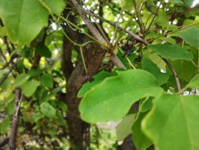 4月20日実家に行ったとき母が「アケビの花が咲いている」と庭の一隅に咲く花を指して言う黒くて小さい花アケビの花、初めて見た!というか・・・・・庭にアケビが自生していたんだ!(知らなかった)