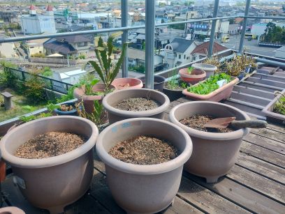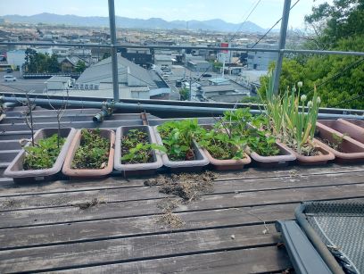2人の子供も成人し そろそろ更年期 仕事もペースダウンぎみ で 以前からの将来(老後)の夢だった仙人生活に向けて 庭やベランダで 細々と野菜を作り始めました