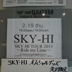 ようこそ!Ride my Limoへ! 今回のツアーは、はじめましての人が多くて非常に嬉しい!! 男性は回りの女性に優しくしてあげたら、モテの人生への境目ですから。 また、俺が見えなくても、かっこいいSKY-HIを想像してくれたらいいから。 それよりもかっこいいパフォーマンスするから!!