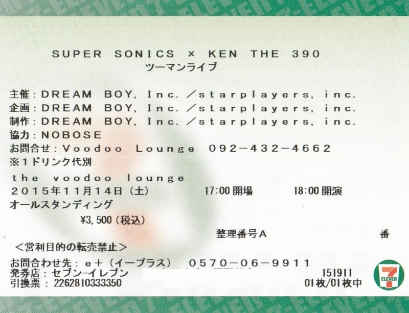 SUPER SONICS × KEN THE 390 ツーマンライブ