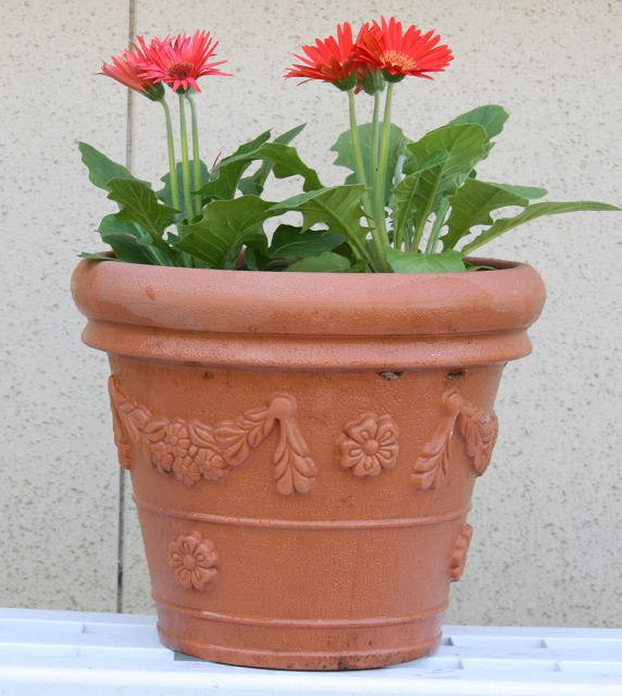 smileさんのブログに髪の毛を切りました、とあった。あの方はいつも侍みたいにロン毛をゴム紐で束ねて見えた。余りにスッキリした様子なので、ここは一発真似ることにした。子供が野球少年の頃のバリカンの登場となった。これにはカミさんも驚いたようだ。あっと云う間に坊主一丁あがり~、まるで中学生みたい、いや今時中学生でもマルガリータはいない。可笑しさを堪えているのが良く分かる。ブログに載せる勇気は持ち合わせていないが、友達に逢ったら何て云われるか楽しみだ、今から言い訳を考えておこう???。気の利いた一言募集中~。コレで交通事故にあっても大丈夫?怪我(毛が)はな~い。ガーベラ