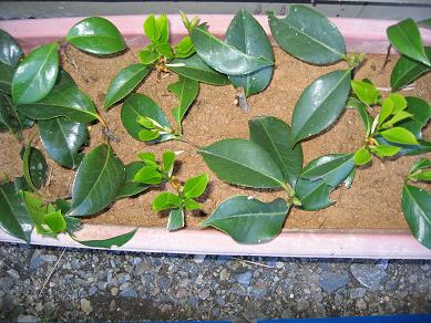 連休最後は涙雨か一日中降り続いた、これで定植した野菜苗も一安心ではあるが今日予定していた草刈は延期となる。この雨で一段と延びるであろう雑草の寿命も延びた訳だ。明日からの仕事に備えて本日は休養に専念するサウナに行きリラックス雨のお陰でタップリ休めた。めぐちゃんに教えて戴いたNHK俳句フォトを覗いてみる事にした。こんな世界が有るんだと初めて知った。受信料を毎年口座引き落としで支払っているんだから少しは元を取らなければとセコイ考えで覗いたのだけれど中々奥が深そうだしフォトの勉強にもなりそうだ。しかし俳句となると些か自信が無い、司会のとき演歌の場合はナレーションは5・7調とか7・5調とか7・7・7・5調でやる、それをもじれば何とか成るかもとフォトを選ぶも句の頭も出ない、これには才能も必要だ。傑作が出来たらご披露申し上げたい。俳句にご興味のある方是非どうぞ。本日は先日、発芽促進剤、メネデールを含ませた用土に挿し木した椿の木です。去年はこれで成功したのですが、本当は葉を半分にすると良いと教えられました。