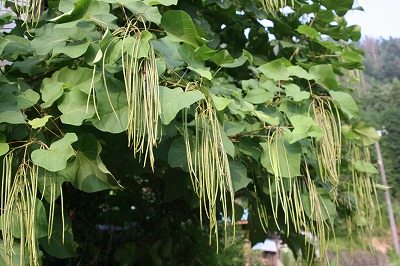 お盆の前の日曜日がお墓掃除の日と決めている。朝6時からご先祖様の眠る墓地へ・・・映画やドラマに出てくるような着物を着て行けるような綺麗な墓地ではない。周りは夏草に覆われている所々掃除にも来ない子孫がいるらしく草の中に石碑がある処もあるようだ。墓掃除は生きている者の勤めじゃ、隣の爺様が言ってたなご先祖様が逢わせてくれたのか、遠く離れた処に住んでいる中学時代の同級生が偶然掃除にやって来た、お互い元気だった事に感謝しつつ友の話に時を忘れた。昔からお墓掃除といって隅々まで綺麗にしないらしい、家の掃除も適当に済ませるとお墓掃除だと云われるようだ。綺麗になったら心も和むから不思議なものだ。次は妻の在所のお墓掃除に行かなくては・・・キササゲの木