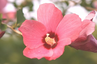注意をしながら作業してたのに今日遂にキロスズメバチの巣に遭遇いきなり右肩に攻撃を受けました。ハチには強い体質ですが、今日のは格別痛い注射でした。巣をゲットして写真を撮る予定でしたが折角の巣が壊れてしまいました。ゲンコツ2個分位の大きさでした。今夜は生中2杯で消毒しました?。未だ痛いです。ムクゲの花