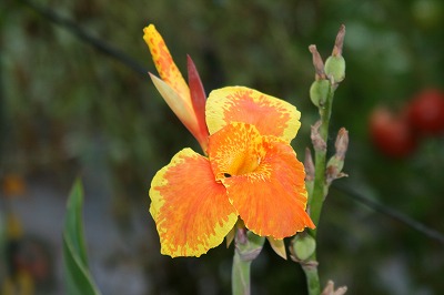朝早くからお盆の準備夕方には迎え火を焚いてご先祖様をお迎えする訳だがあっちでもこっちでも同じ様な火が灯されているのに分かるのだろうか?最後は痴呆だったけど・・・そんな心配は要りませんね。仏壇から位牌を出して桐の葉の上に乗せキュウリで馬を作り、盆が明けると川に流していましたが今は河川の汚染になるとかで流しませんね。廻り灯篭の準備も出来ました。明日から本番お盆行事です。みかんが一個生りました