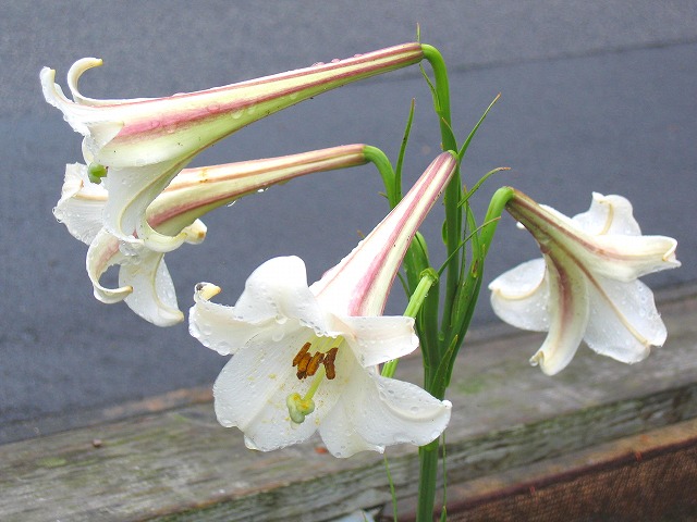 夏の終りから咲き始めるこの花以前は余り好きではなかった何処からともなく飛んできて勝手に咲く毎年庭先のこの花を抜き取っていた何故嫌いだったかと云うと植えてもいないのに勝手に大きな顔して咲くところしかし今年は少しだけ残して見た抜かれても抜かれても生えてくる根性が気に入った何かを教えられたから・・・鉄砲ユリと思っていたら台湾原産の高砂ゆり高砂って目出度いもんだよねだからこの花が咲いたらいい事あるかもと?世の中そんなに甘くない?