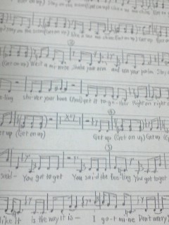 そして最後に「Sex Machine」のスコア(写真)を書いたときは、何度聞いても音程が取れず、4時間以上かかりました。
