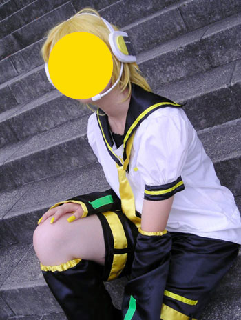 この夏休みは、ある意味、今日のために頑張ってきたと言ってもいいかもしれない。もしかしたら間に合わないかもと思っていた衣装もなんとか出来上がり、(というか、私が作り上げたんですよ徹夜で)友達の友達、という縁で知り合ったコス仲間さんも来ていたのでそれなりに楽しく過ごせたようだ。だけど、手放しで、心から、「あ~、楽しかった」とはどうしても思えず、それが一番、何よりも辛いのだとちさは言う。時間と休息が何よりの薬だと思うんだけど、彼女自身が休む事に恐怖を覚えているうちはどうにもならない。少しずつでも良くはなっているから、あせらないで欲しい。ちなみに今日のコスプレは鏡音レン。本当はもっとピンピン頭だ。ヘッドセットのマイクを左右逆に作ってしまって落ち込んでいた。彼女自身のコスプレブログの写真は顔を出しているけれど、彼女自身の名誉のために、顔は隠します。
