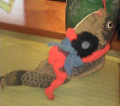先ほどの箱の中に押し絵が、何枚も入ってましたそれを 柳の枝に、ぶら下げるといういわきのつり雛相当古いもので布の柄もなんとも言えずおらの気に入った金太郎は下のほうにぶら下がっておったこれは、裏もいいよ鮮明に写ってなくて残念民俗学からいっても非常に、興味あるものだこの展示会で見ることができた本では、見たけど実物を 見れた感激だ上の方に こんな押し絵も一休さんとさよちゃんみたい普通の展示会では見れませんいわきの吊るしのルーツだここで、見れるとは思わなかった