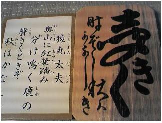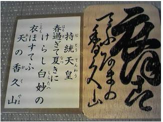 今日の工房は涼しかったので助かった例のごとく暇暇なので新しく手に入れた百人一首の読み札と下の句を順番に並べて一人百人一首をまたまたしてましたががが上の写真見てくんよ同じ札が二枚もあんのよどうなってんのーーーたまにこんな風に写真乗っけて見ます「今日の一句」意味なんてもちろんしんない分かる人いたら書いて置いてねんでも民衆に分かりやすくお願いねおらの場合意味より字の形に興味あるみたい
