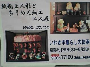 いわき伝承郷にて古布と紙粘土の展示会6月2日までやってますまず、迎えてくれるタペストリー 下の部分八千代先生の作品はちりめん細工するかたはぜひ、、見るべきだ実に繊細で、綺麗な仕上がり手を 抜かない作品ばかり並ぶ大河原八千代先生写真が、ボケましたが実物は、品のいい方だったさくぐ、おらに合わして会話してくれた暖かさもあったのだこの人の作品を 知らないともぐりになるとおらは、思ったでー こちらは、清野さんの紙粘土細工はずかしいからと後姿ズボンが、カッコええからとこんでは、へんだっぺよんでも、恥ずかしいんだと清野さんの作品だじっちどばっぱさまだ古布細工の写真は、いっぺー撮ったからまた、のせっとすっぺ一応、お知らせだーーー