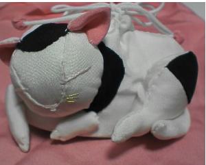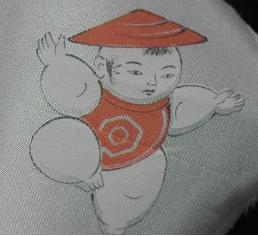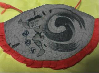 このシリーズで前回は、恵比寿の絵図だったので恵比寿袋ってしました今回は雷様袋になるのねしかし、この裁断で調子こいていたらこうなるわけだから顔がーーーーーー三つ巴の模様はええけどま、、悪いことすると鬼出るでーつーことにしといてくださいませんか