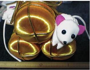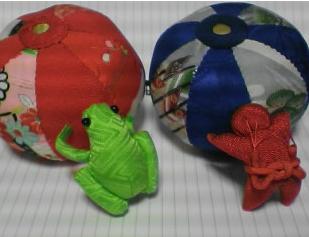毬ね男の子の這い子さん用と女の子の這い子さんと喧嘩になんないように中輪のさるぼぼね(右)この間の、三番叟より大きさ小さい蛙は、黄緑色ね羽子板と羽中の輪ので、小さいサイズ今回の犬張子です=====おやすみです