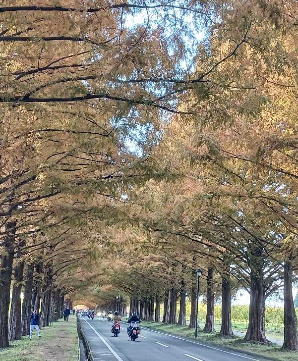 メタセコイアの木の下をまっすぐまっすぐ歩きました。