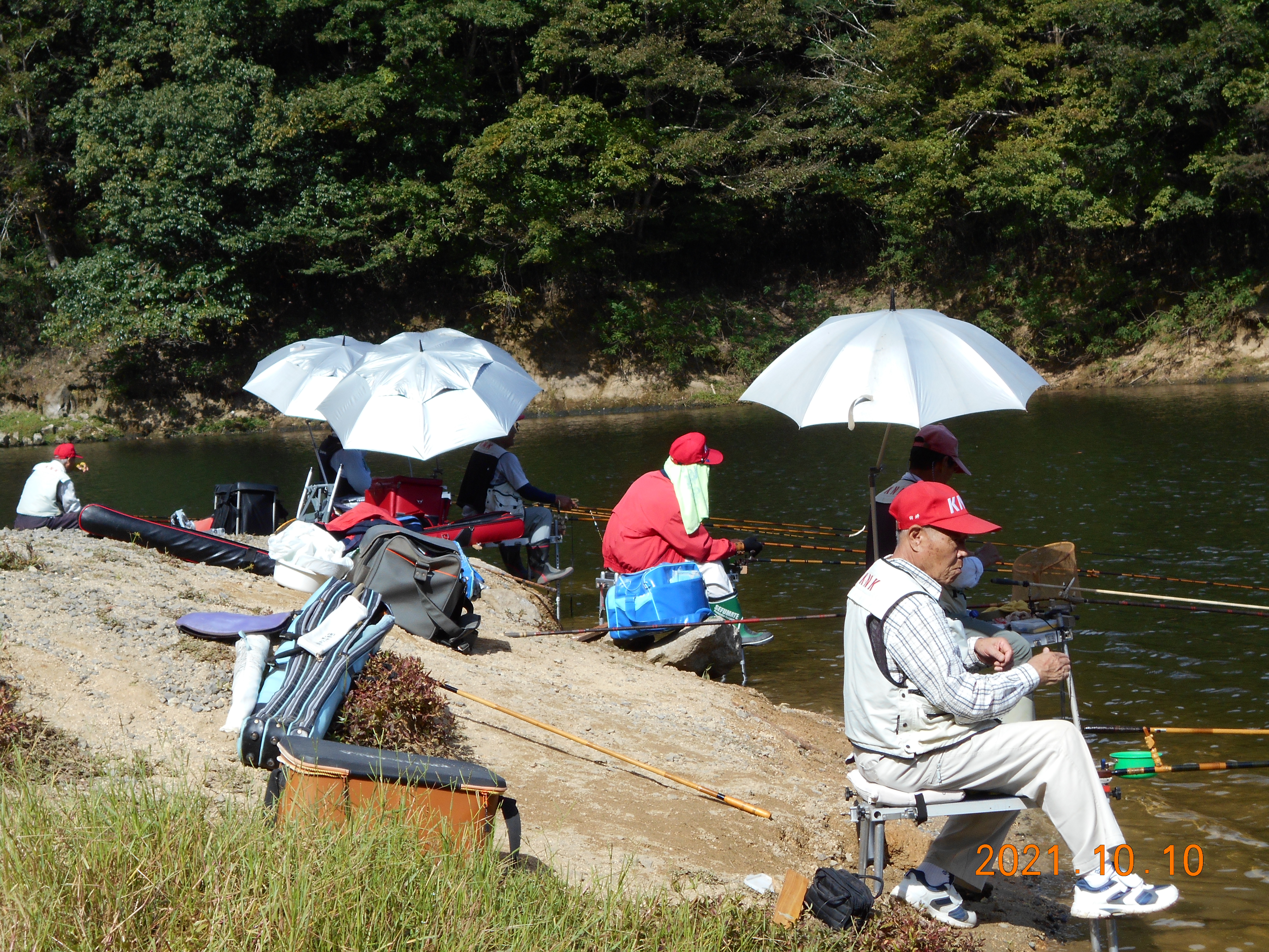 野べら会10月例会も布目ダムを使用しました。土曜日の昼前に現地に入りましたが副ダムは水がなく釣りにはならない状態でした。副ダムを通り過ぎ焼却場へと車を走らせ11時前に着きスロープの方へ見に回ると会友たちが竿を出していました。昼前だと焼却場の駐車場は満車状態でしたが、見に回っている間に若干駐車場が空きそこへ車を移動して釣り道具運び釣りを行いました。19尺で行い3投目で1枚、5投目で尺半近くの魚をゲット、1時間ぐらいで4枚を上げ竿を短くして状況の確認し、18尺で1枚ゲットして終了。