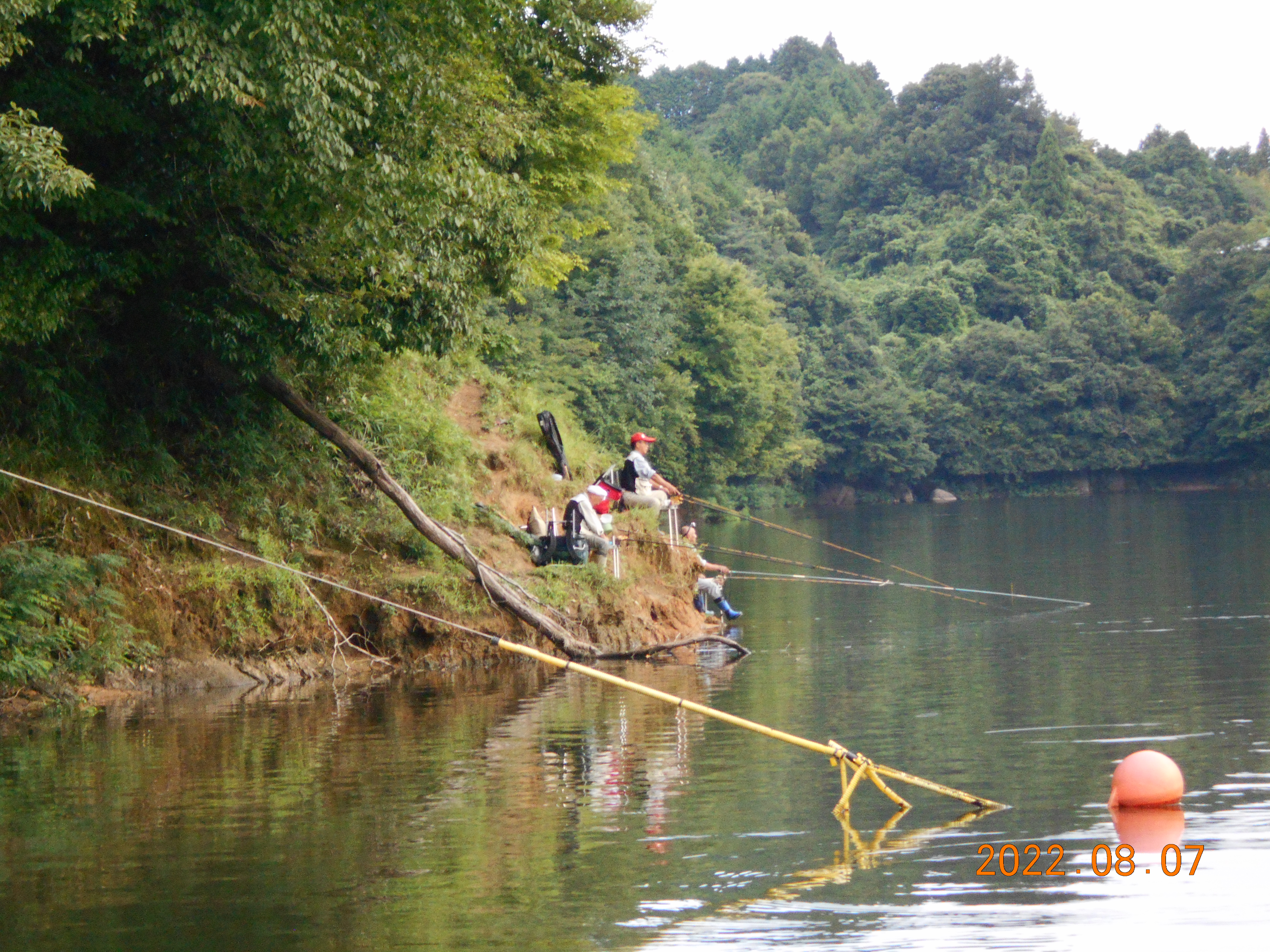 ダム全体に釣果は悪く、野べら会は焼却場に全員釣り座を構えました釣果のあったのが5名でした。例会当日の最長寸は38.3cmでしたが、土曜日に43.7cmが上がりました。